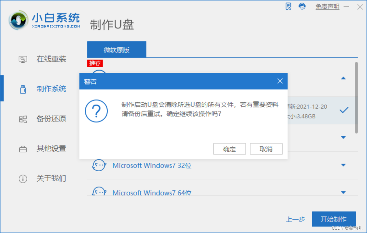 步骤3:一个小白色按钮重载系统会发出警告,它将提示您备份u磁盘,并且您可以直接点击它来确认。