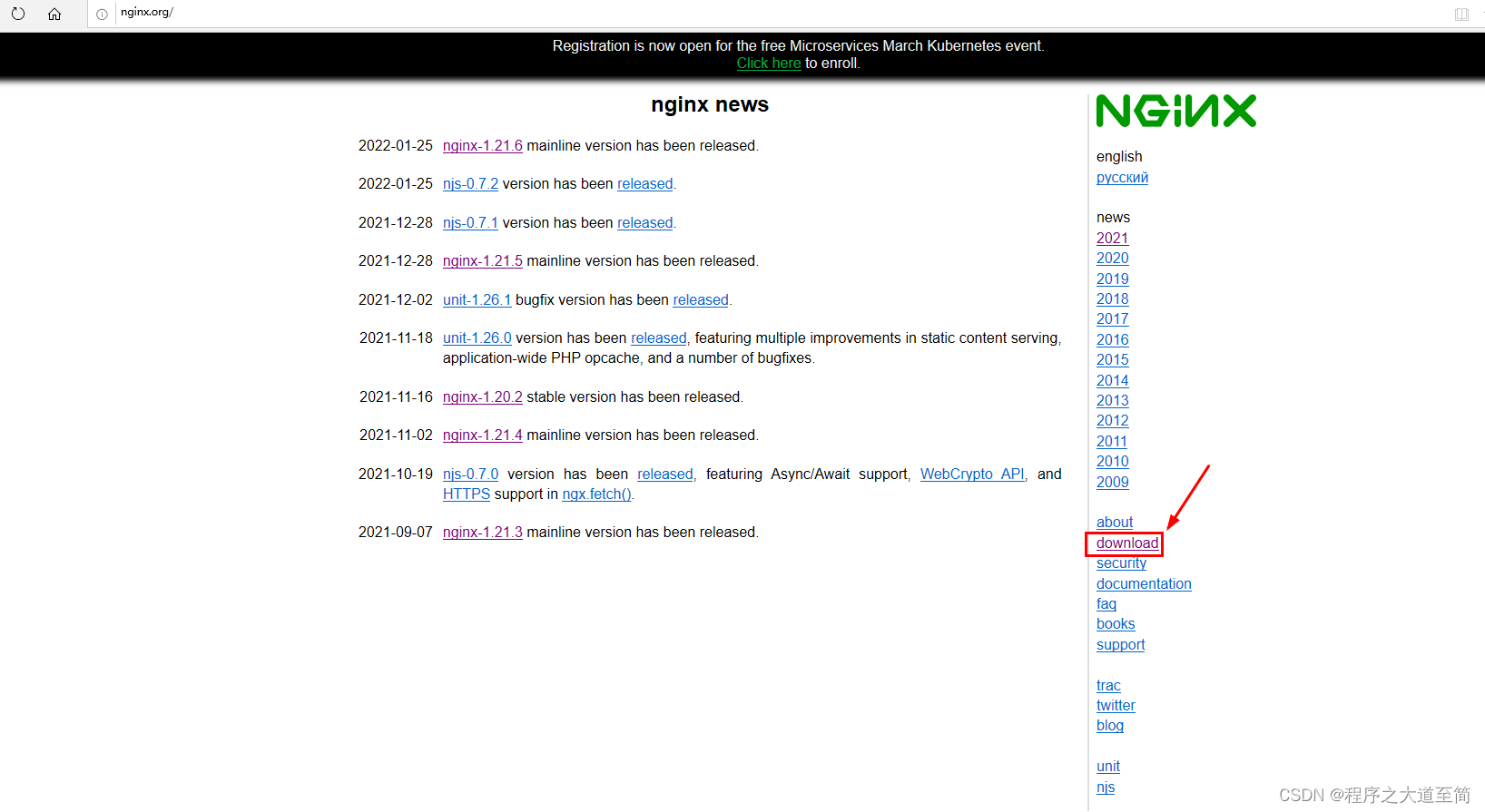 进入 Nginx网站: http://nginx.and 然后单击 " 下载 "