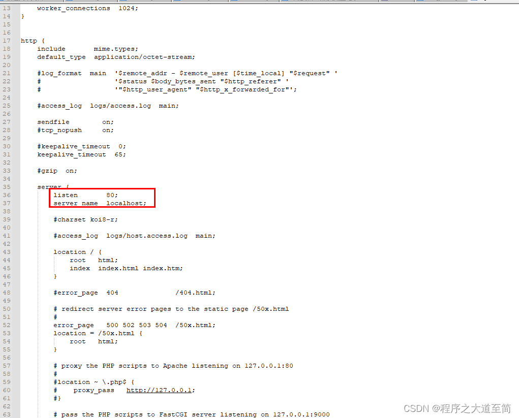 nginx的配置文件是conf目录中的 nginx。Conf,默认的 nginx监视端口为80,如果本地计算机的80端口被占用,如果本地80端口已经使用,则它被修改到另一个端口。