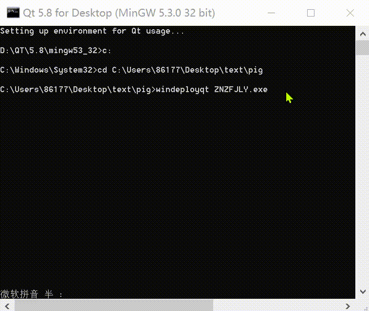 3.输入命令行windeployqt xx(例如ZNZFJLY是主机的名称)