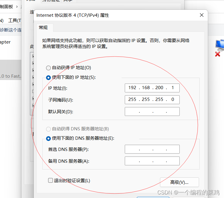 找到以太网->电脑右键属性->找到IPv4->点击->按照自己想要的ip配置,比如192.168.200.3之类的,子网掩码会自动分配,不需要自己配置