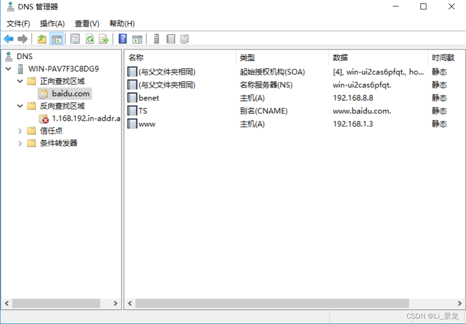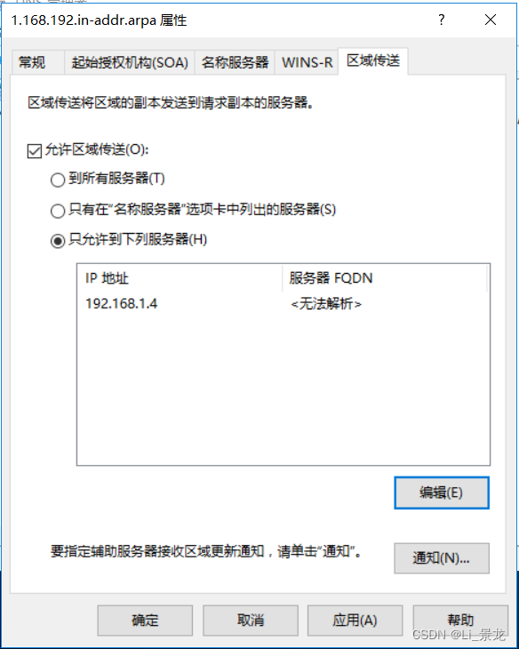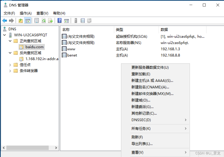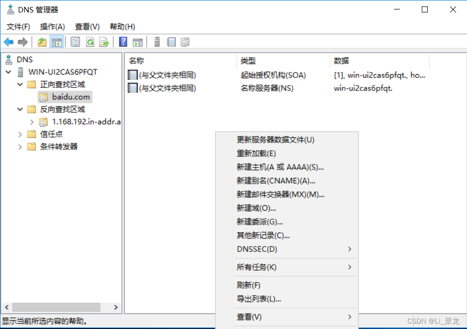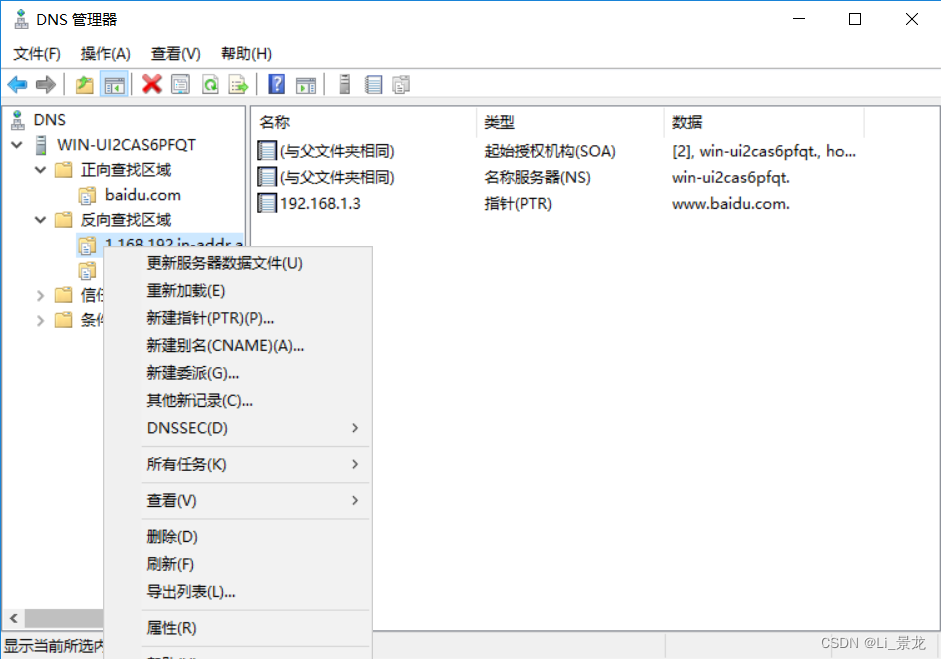 - 在主服务器上,右击192.1的逆区域,选择属性。