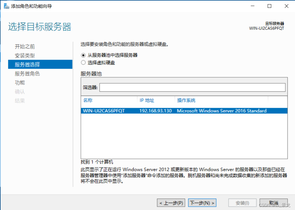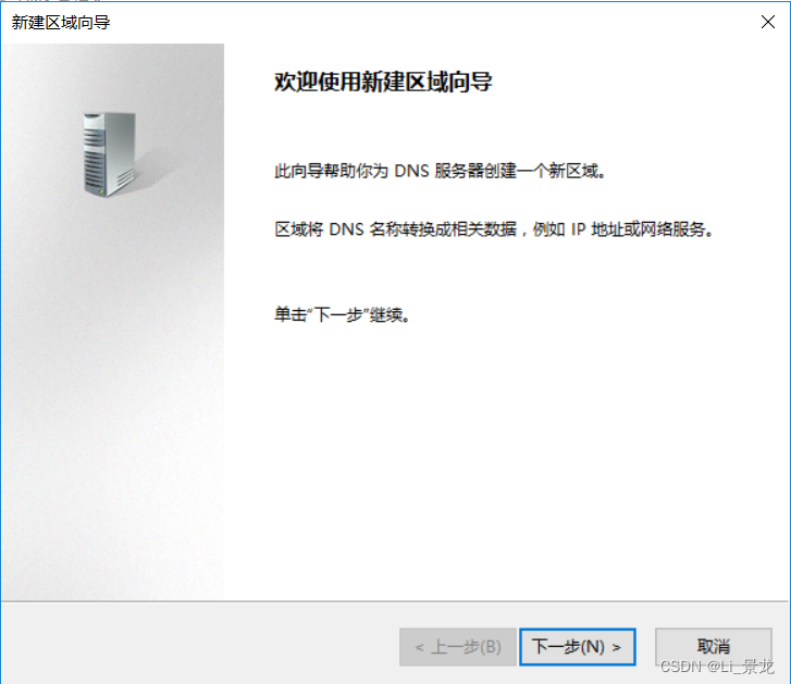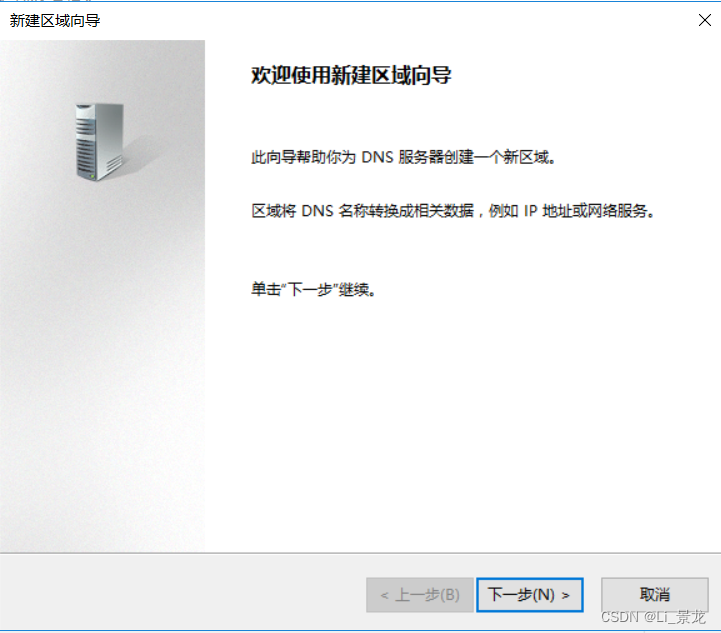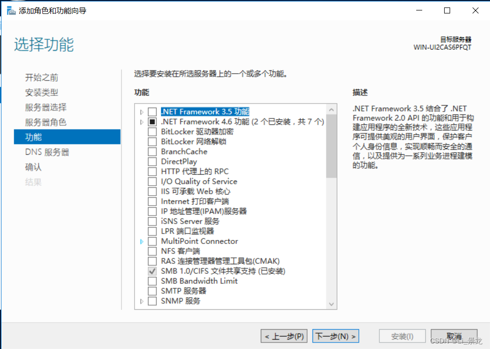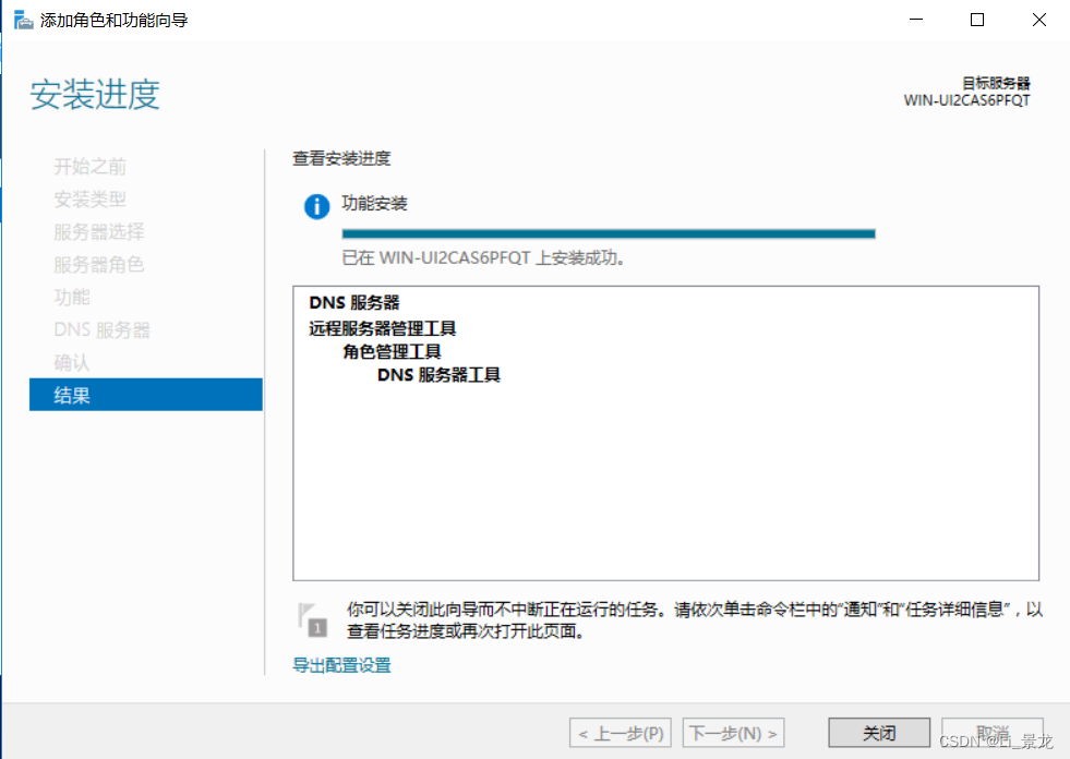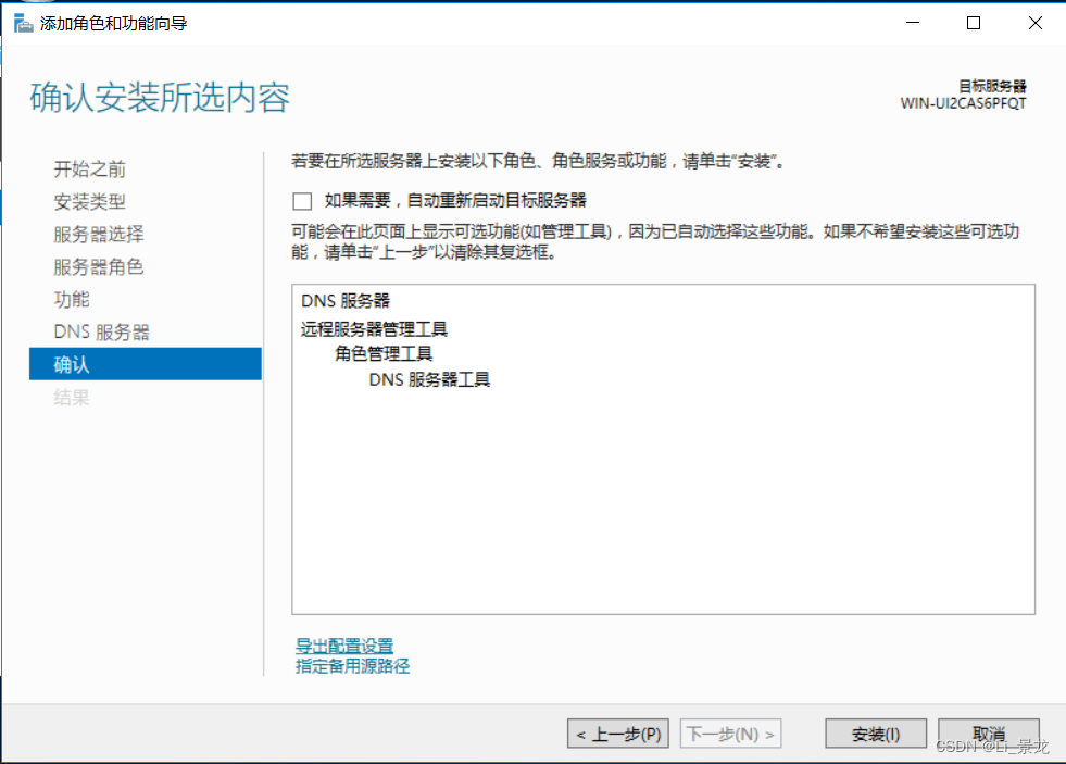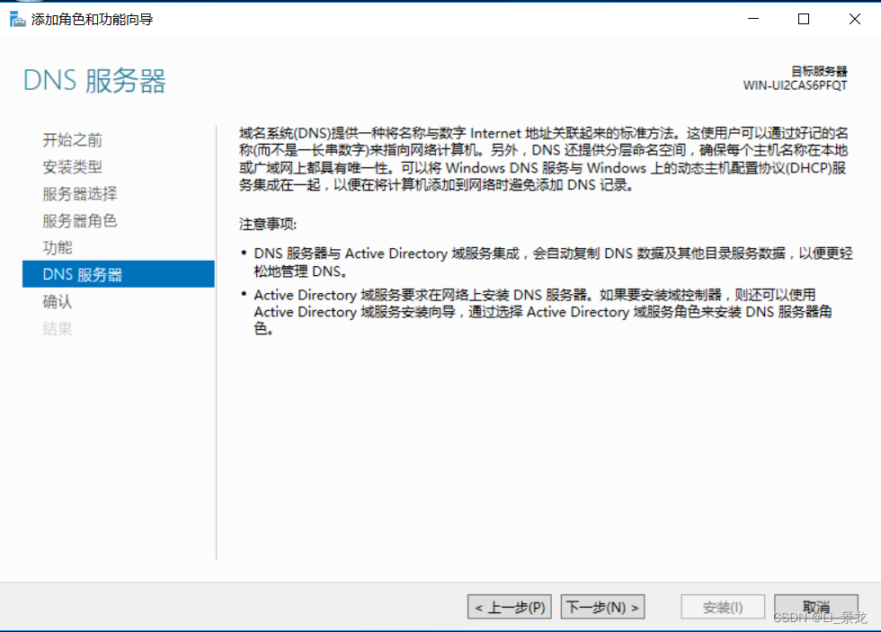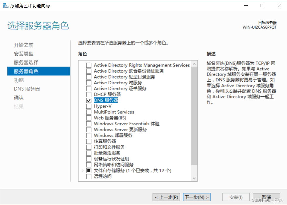 - 选择DNS服务器选项,单击下一个步骤,并安装直到单击安装按钮被按下。