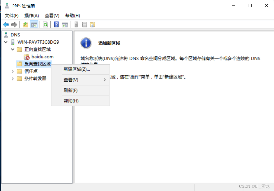 - 选择“反向查询区域”,右击,然后选择新的区域。