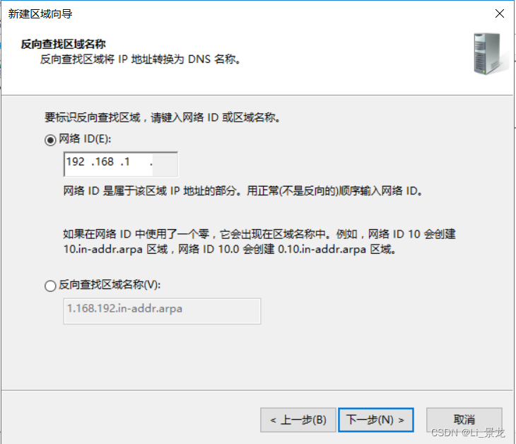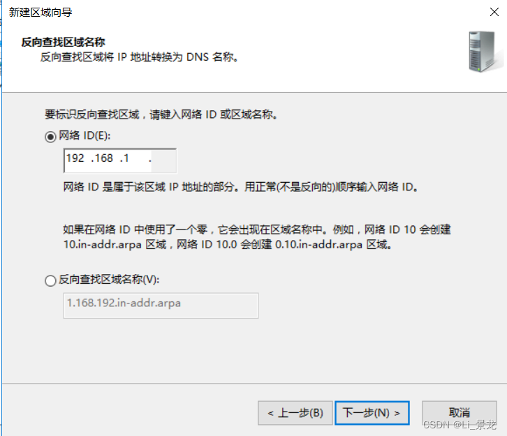 在“反向搜索区域名称”中,输入网络ID192.下一步是单机。
