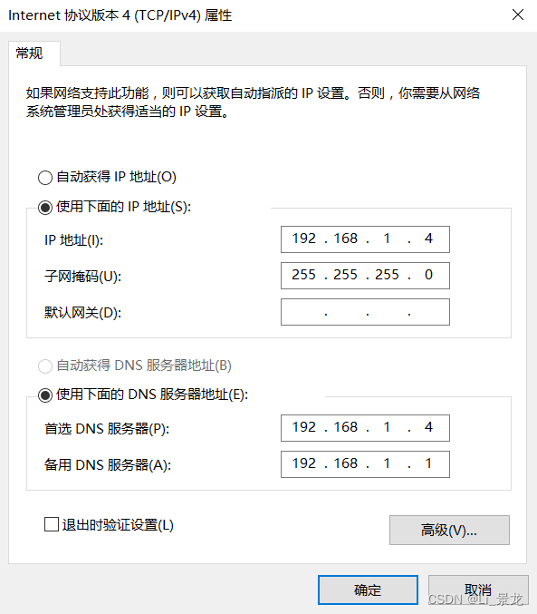 在出现的对话框中,输入服务DNS服务器的IP地址。