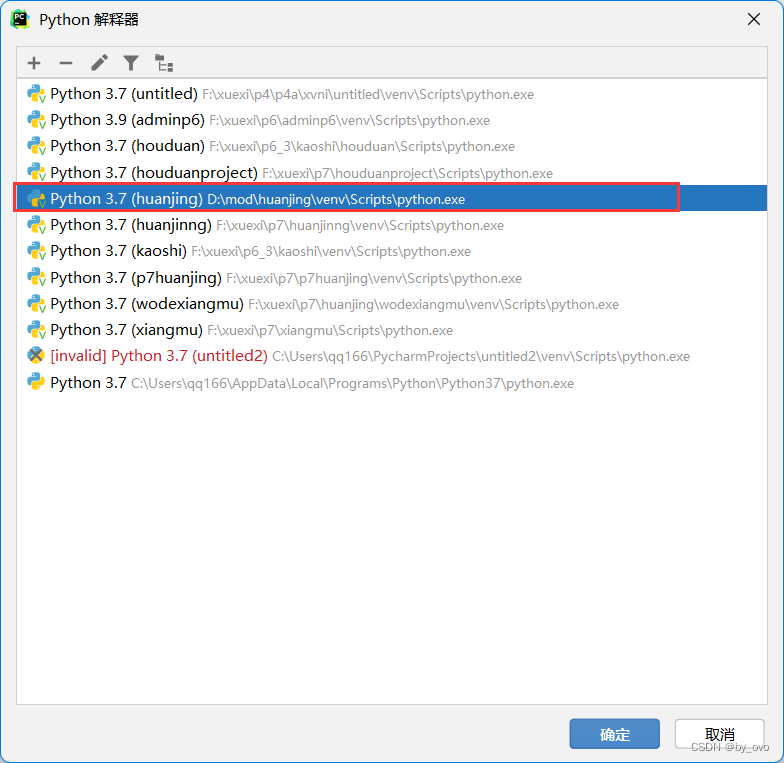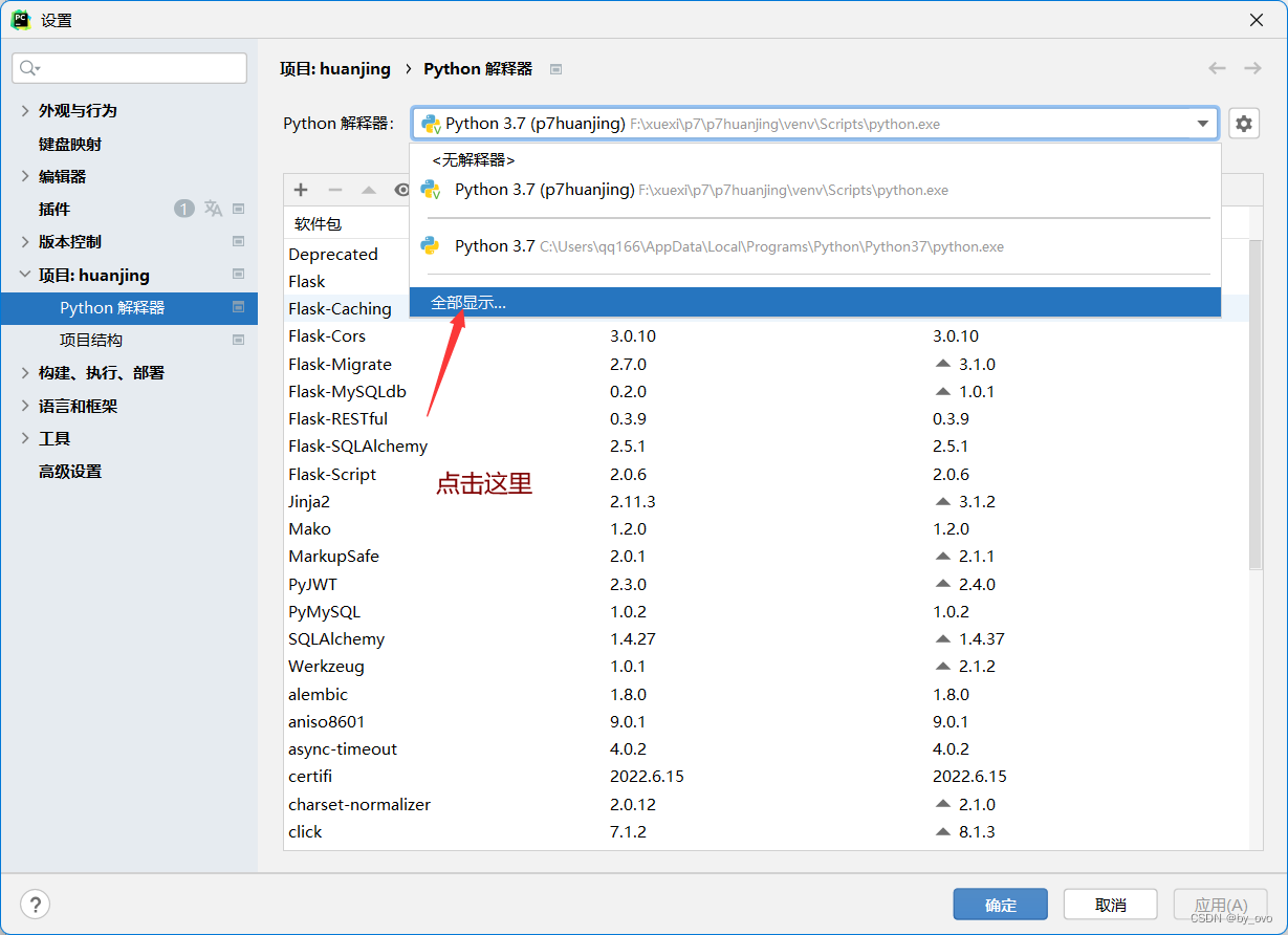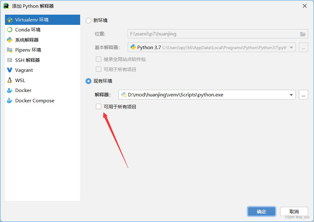 这允许当前的虚拟环境应用到该类型的项目