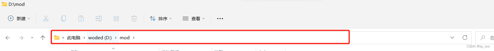 首先找到你想要的位置,例如D:mod,然后进入文件夹,然后点击图片中的位置,然后输入cmd,然后打开命令提示