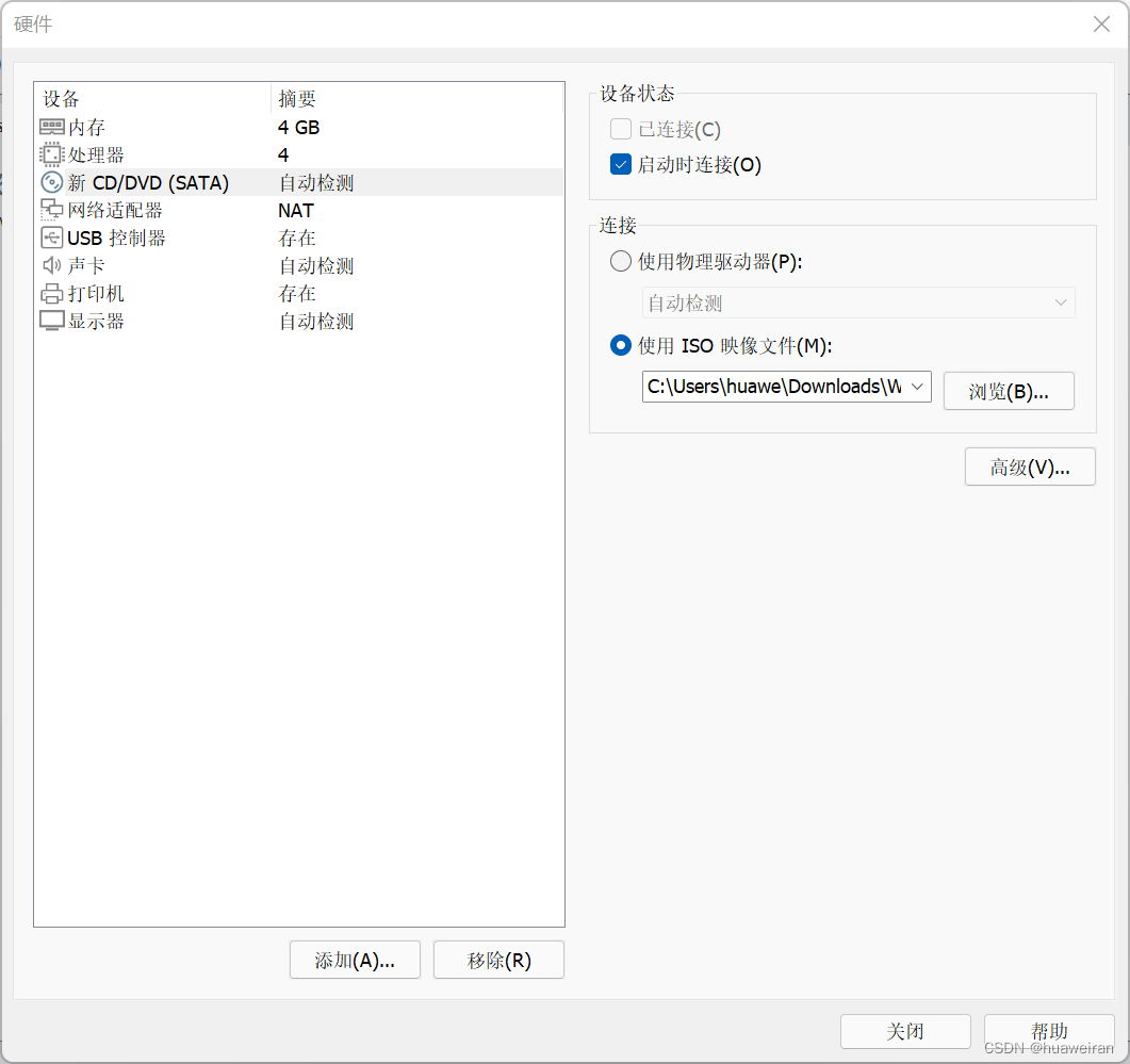 16.单击“新CD/DVD”以使用ISO图像文件并插入下载的图像。