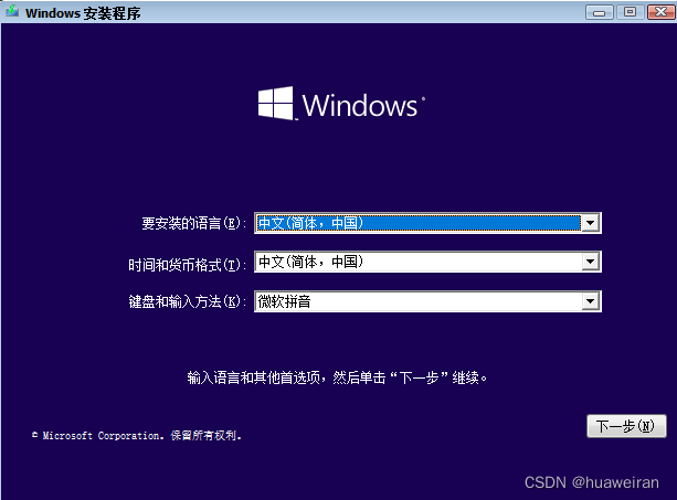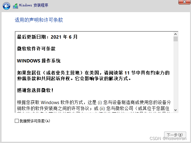 26.启动Windows安装程序,输入或选择第一个选项,然后单击下一步。