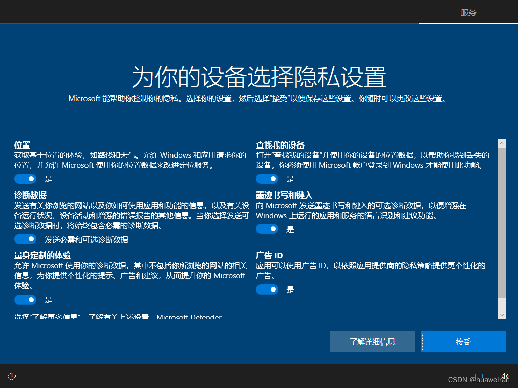 47.选择您的设备的隐私设置,然后单击接受或了解更多。