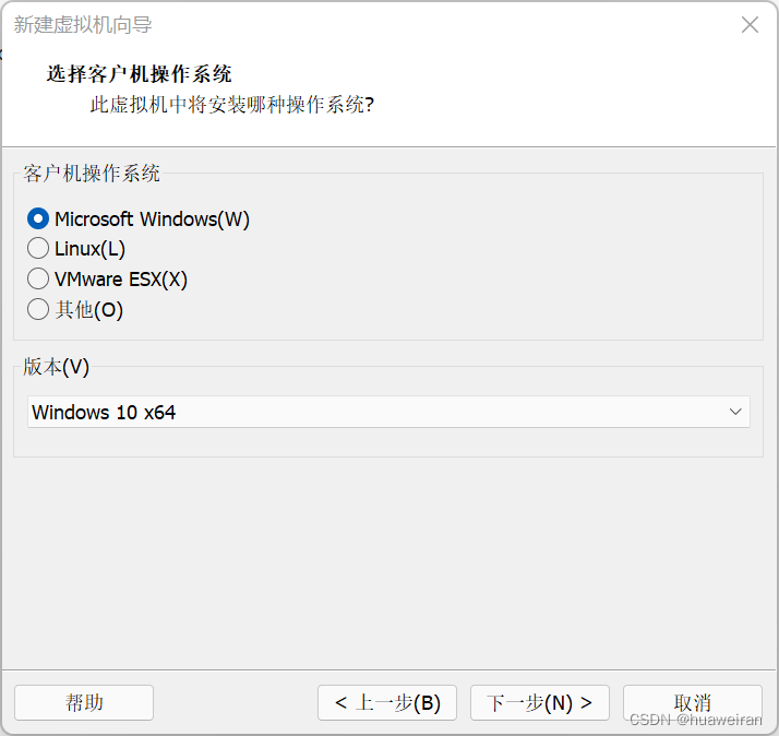 10.客户端操作系统选择Microsoft Windows,版本选择Windows 10 x64(如果您下载镜像像64位,选择Windows 10 x64;如果32位,选择Windows10),单击下一步。
