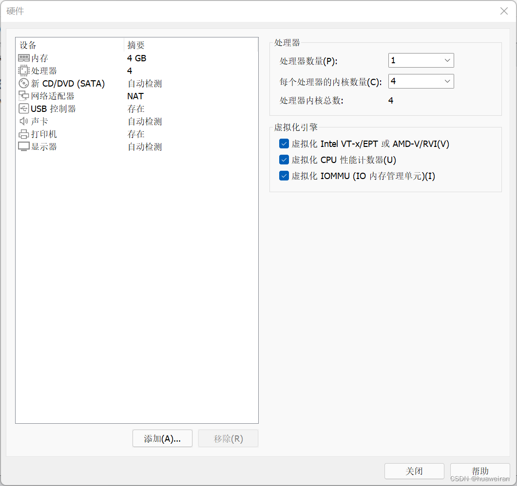 将处理器的数目拉到一个,内核的数目拉到四个,以及虚拟化引擎的检查框都拉到一个。