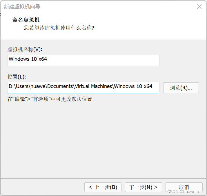 11.给虚拟机一个名称,并将磁盘文件放在适当的位置。