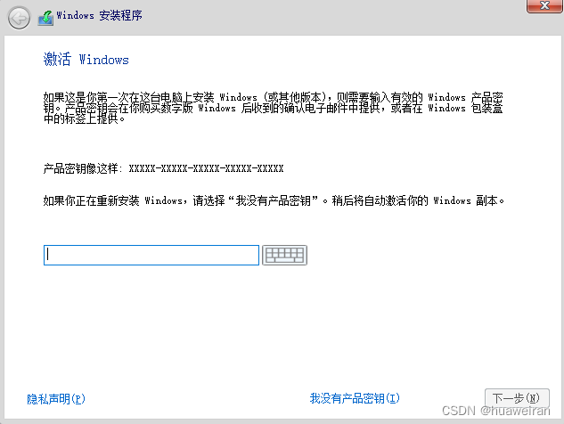 29.如果不能跳过,请在对话框中输入产品键,以激活Windows。