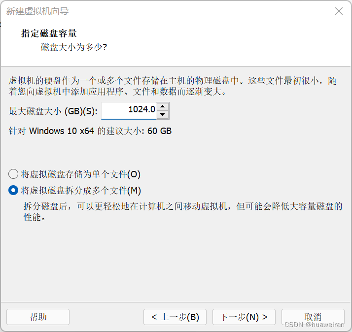 12.设置磁盘的大小,无论如何设置它,它都是虚拟的,更取决于你决定是否切断。