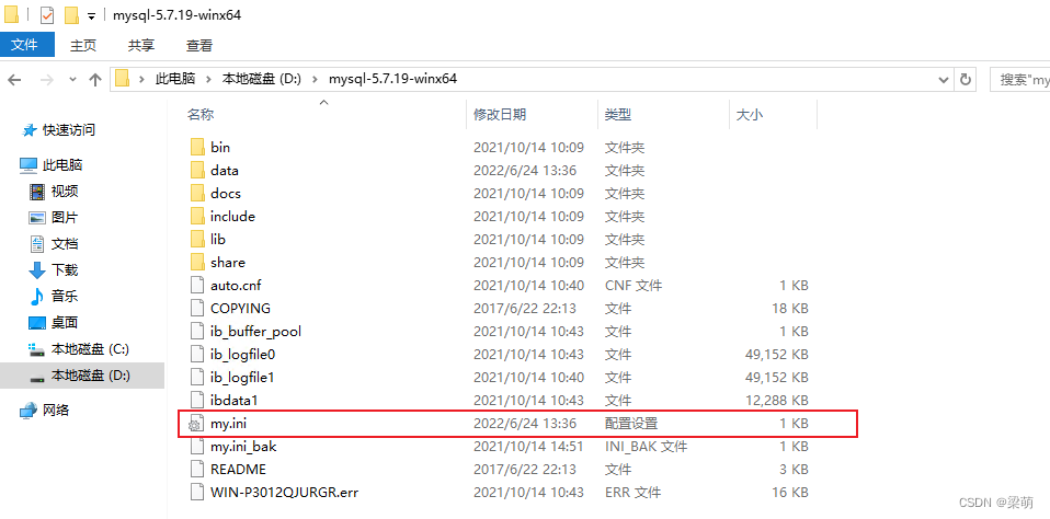 在这种情况下,直接进入MySQL安装目录并找到My.ini文件