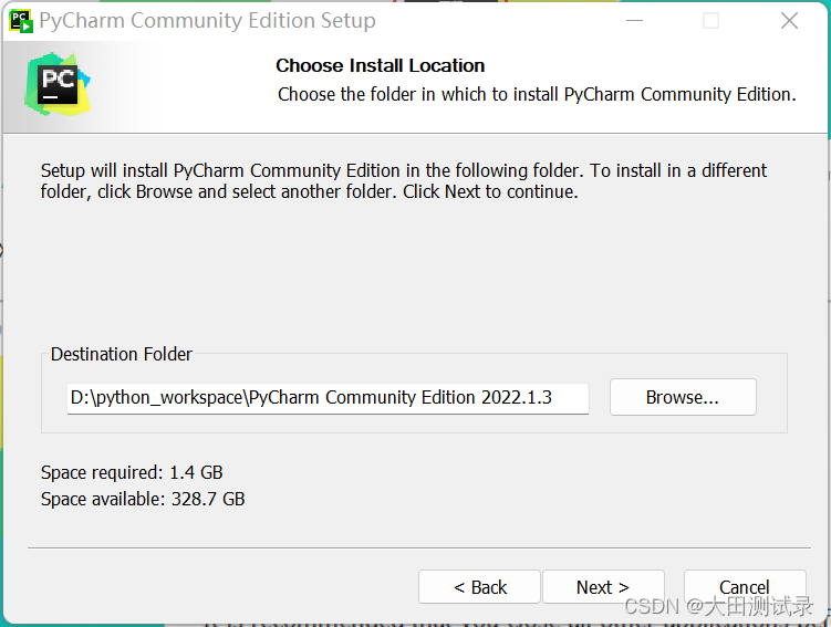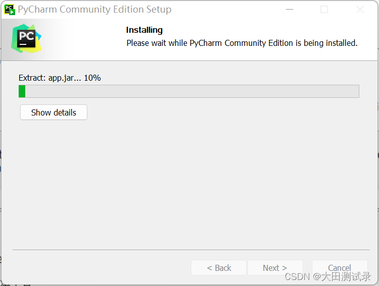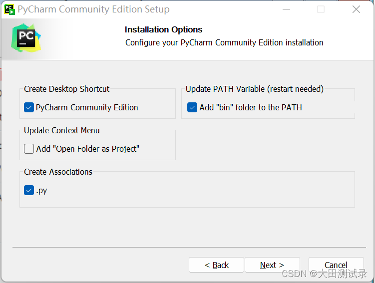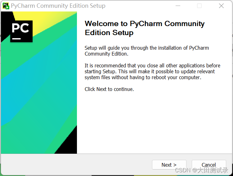双击PyCharm'sexe文件并单击下一步