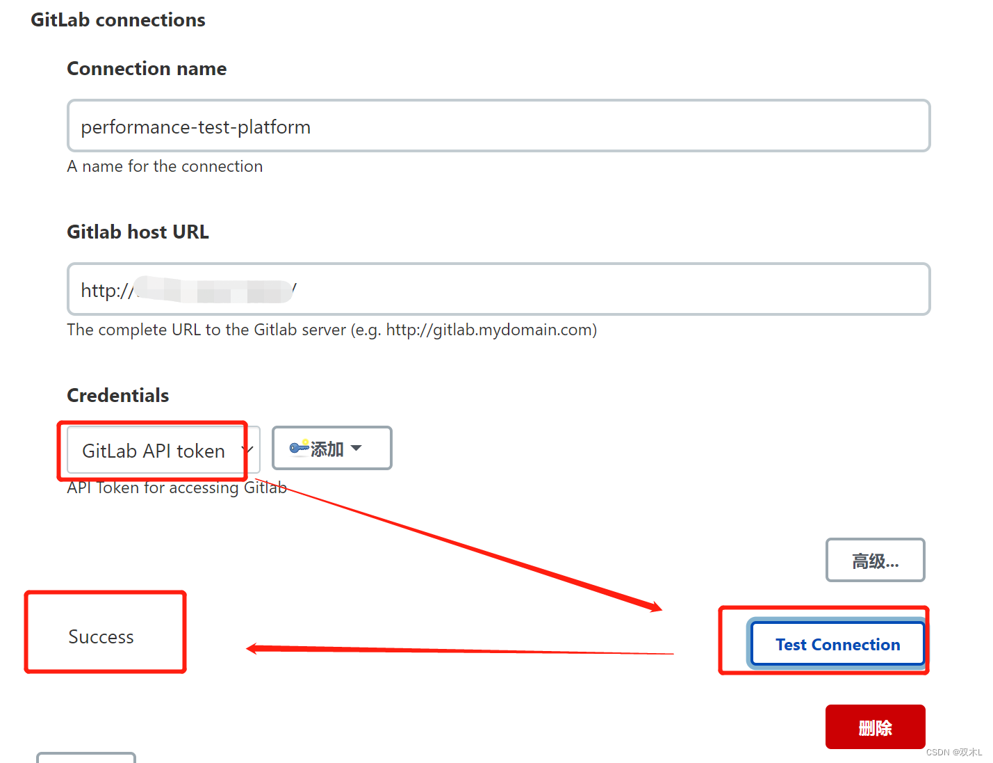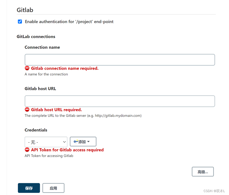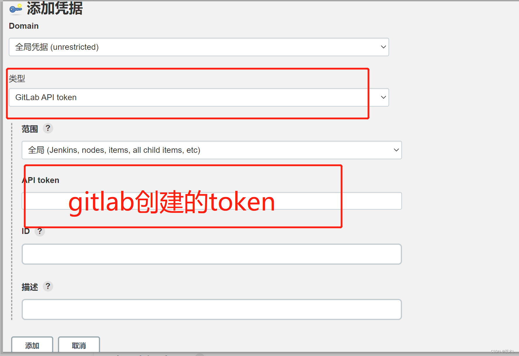 无论如何,请使用名称,然后使用Gitlab地址,第三点[权限]需要添加トークン,这是我们在Gitlab上创建的访问トークン,点击[添加],选择詹金斯,泡沫如下: