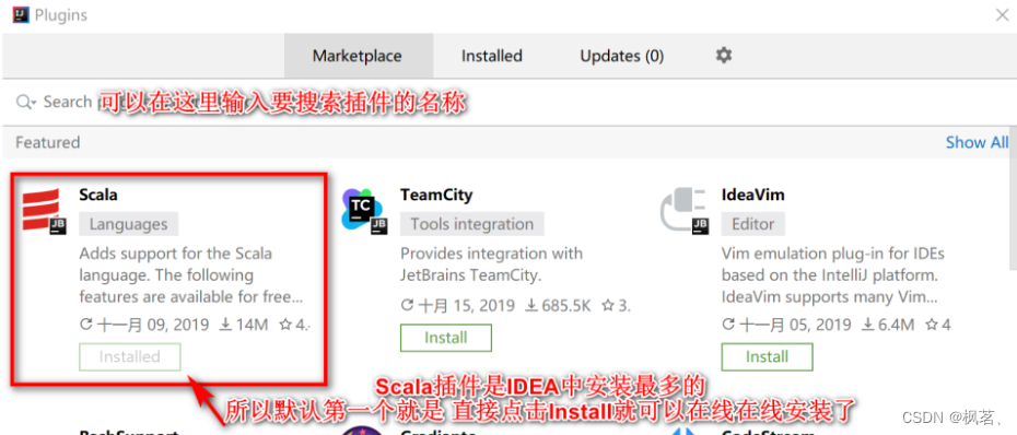 1)在IDEA中安装Scala插件