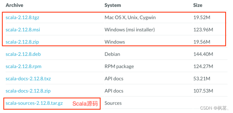 浏览Scala的网站 https://ww.scala-lang.下载该网页,单击“所有以前的发布”