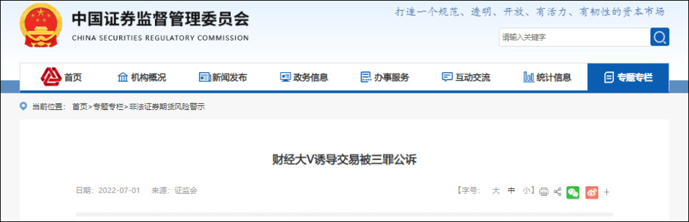 证监会:400万粉财经大V徐某诱导交易被三罪公诉,涉案金额超3000万元