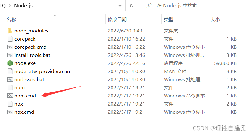 2.在file.cmd中找到 npm.cmd将它的前缀-g改为 --location=global