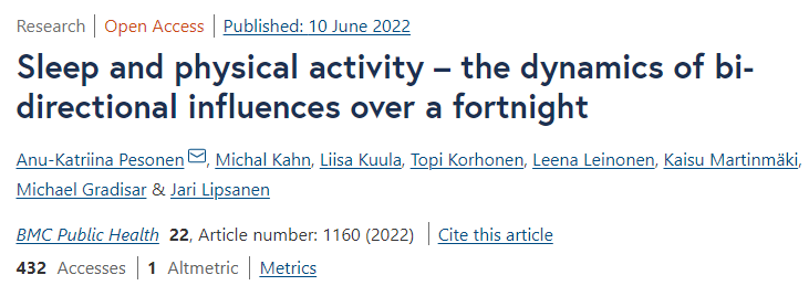 然而,荷兰赫尔辛基大学和澳大利亚弗林德斯大学联合发表的一项新研究发现:上一天的密集锻炼不仅与改善睡眠质量有关,相反,它会导致更短的睡眠时间,扭曲了“增加锻炼能改善睡眠”的观念!该研究于6月10日在BMC公共卫生杂志上发表。