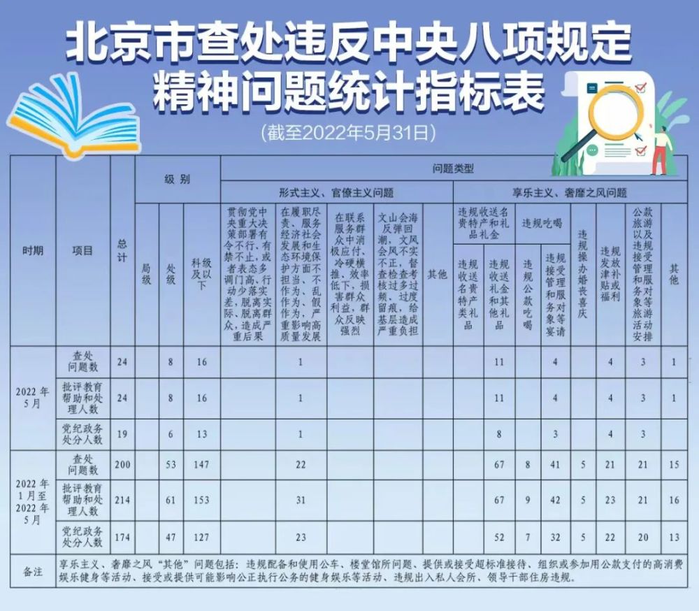 日前,市委书记事务处监察委员会于二零零八年一月至五月期间公布违反八项中央规定精神问题统计指数表。截至5月31日,该市已汇编了200宗违反精神问题八项中央规定的案件。关键教育援助和处理的人数为214人,其中 61 个 是 部门 一 级, 153 个 是 部门 一 级 和 以下 的 。