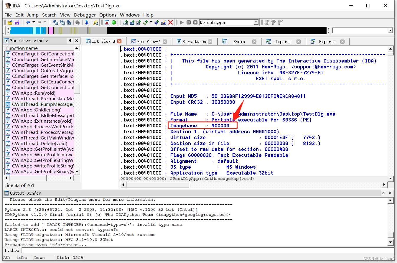 然后进入打开TestDlg二进制文件的IDA,查看TestDlg模块的默认上传地址:(您可以通过滚动滚轮到顶部,注意这是默认预装地址,而不是上传后实际地址)