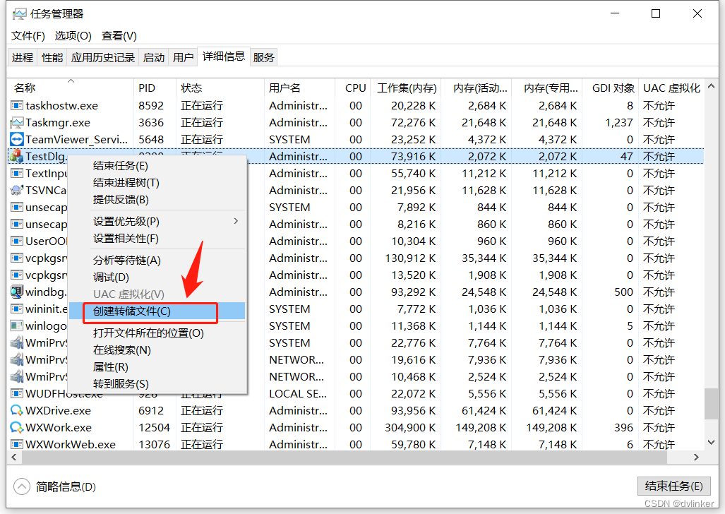 我们将将windbg添加到使用的过程中。 由 dump命令生成的垃圾文件是一个完整的垃圾文件,包含了全部垃圾文件中的信息,可以与所有变量的信息一起查看。 此外,垃圾文件可以通过任务管理器输出: