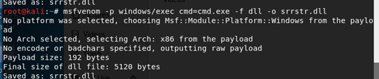 转换 Coolis 为 DLL 并上传到C:Users<Username>APPDataLocalMicrosoftWindowsApps在执行SystemPropertiesAdvanced之后,它将自动srrstr.dll存储器被装入系统属性高级进程中,同样,我们也有管理权