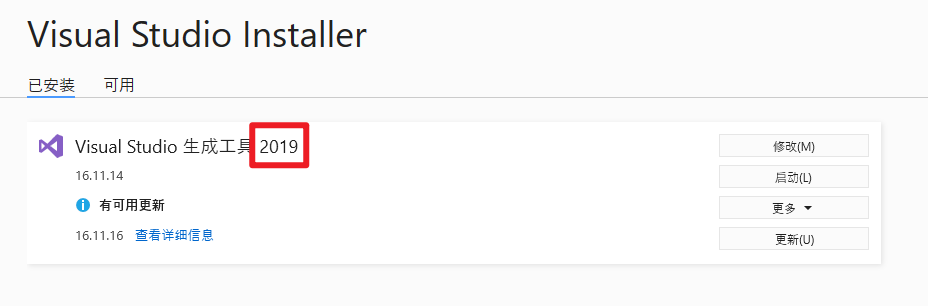 如果你在前面安装Microsoft Visual Studio C++建模工具,不是上面的页面,而是下面的页面,证明你已经安装了Visual Studio生成工具。我强烈建议您卸载已经安装的Visual Studio生成工具,然后重新安装将输入上面的这页,安装过程必须选择上面图中的红色框的所有内容。
