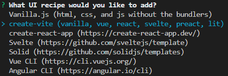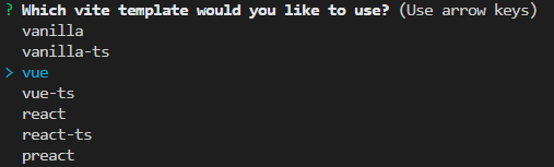 接下来的步骤是选择前端开发者使用的建模工具(视图),我们选择使用vite。如果你不知道邀请,别惊慌。这里我们不需要知道“邀请”的用途,你甚至不明白维特是什么。它只是作为一种建筑工具。在大多数图里桌面应用程序开发的场景下,你甚至没有经历它的存在。