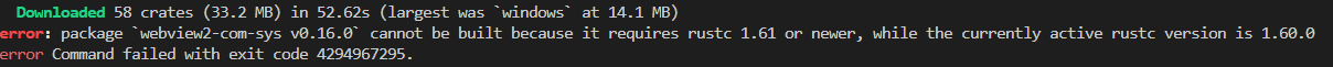 runstc -V看一下 version number ofrust。 我以前用过它1.60.0在发布时,图表下所示的tuuri软件未能构建。