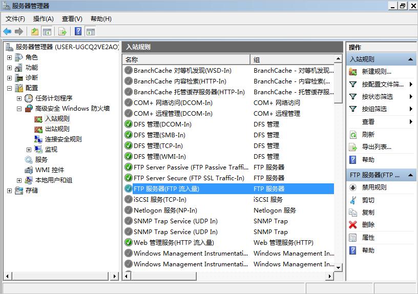 - 首先检查服务器管理员的登录规则,以确保FTP服务器被启用。