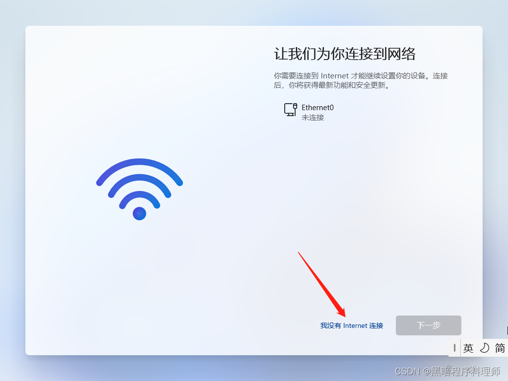 首先我们都安装了Windows1122H2,镜子复制完成后,新机器自驱动系统首先启动,或从工厂系统中恢复镜子,选择国家地区,默认键盘设置等等..直到连接接口(注:不能连接到有线网络,一定要拔掉网线)。