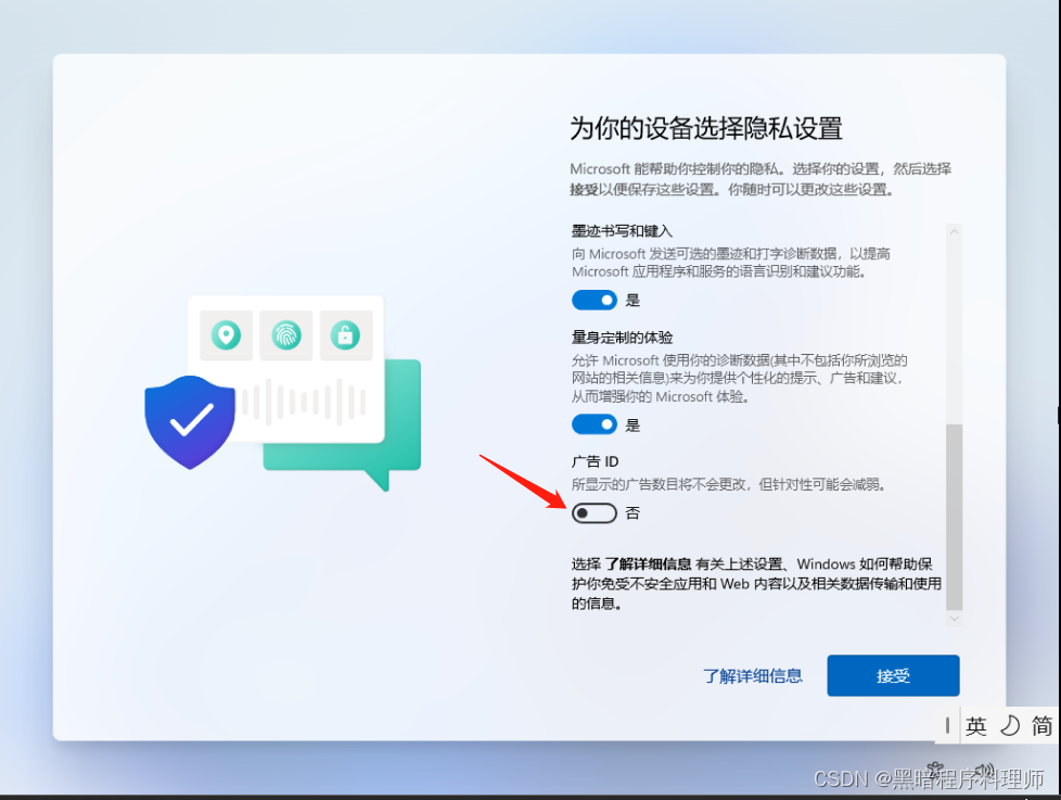 然后输入登录键,您不需要直接输入登录键,根据您的配置设置的隐私设置通常是删除最后的广告ID,点接受。