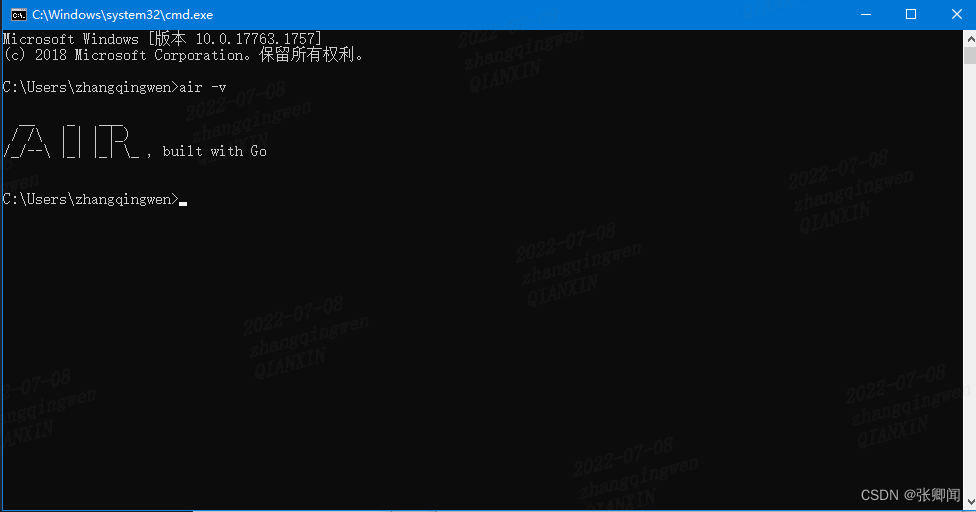 然后把它整齐解决,直到您关闭页面,重新启动cmd,并执行air-v命令