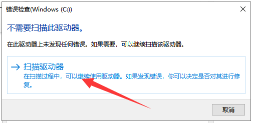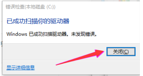 4、接着等它扫描完成就行了,扫描出来错误就根据提示进行修复,没用发现错误的话我们就点击关闭。