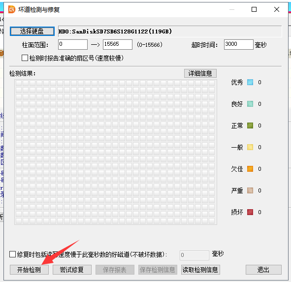 2.从不良路径检测和修复中选择好的硬盘后,直接点击启动检测。