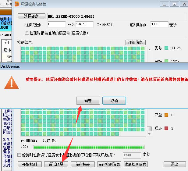 它也可以通过其他修理工具通过点击硬盘的顶部和点击坏路径检测和修复修复。