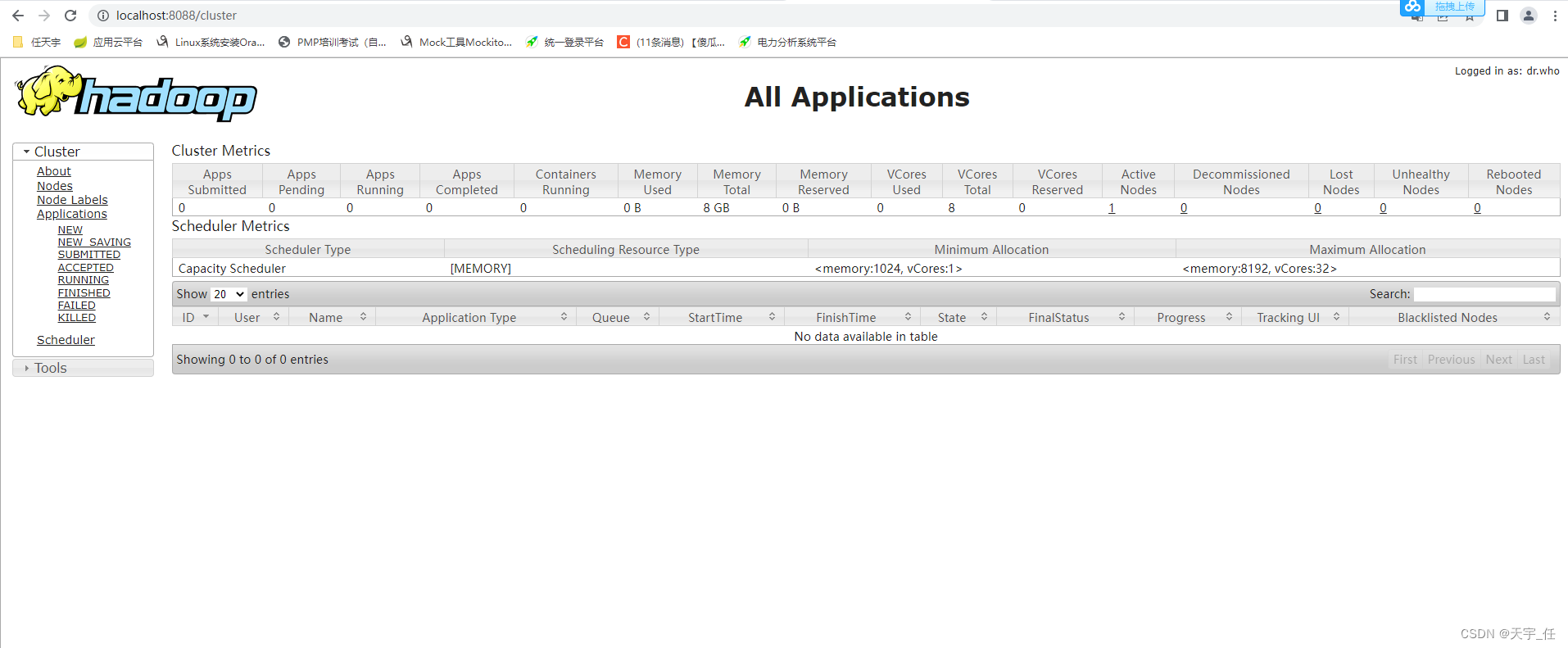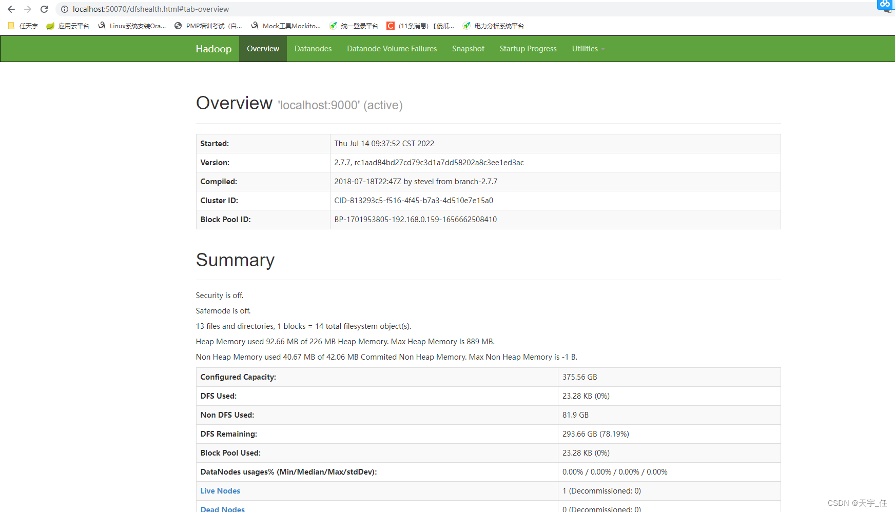 打开浏览器并输入地址栏http://localhost:50070查看海道普状态