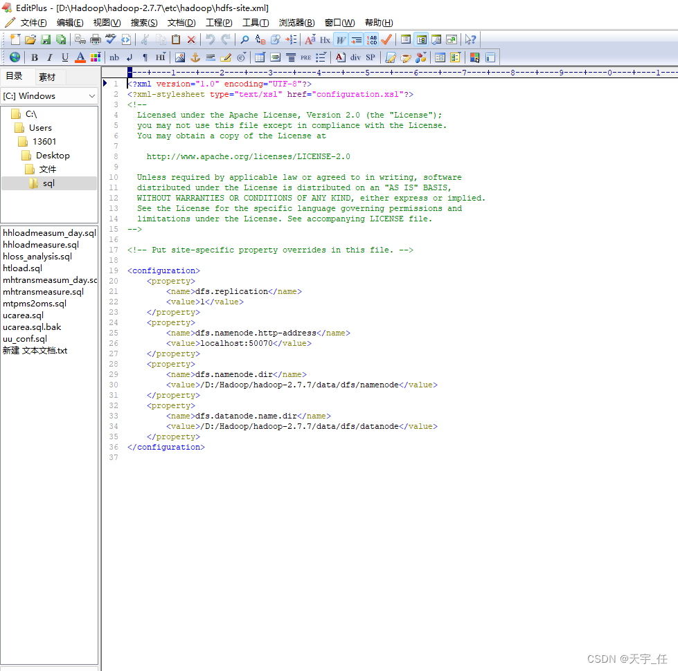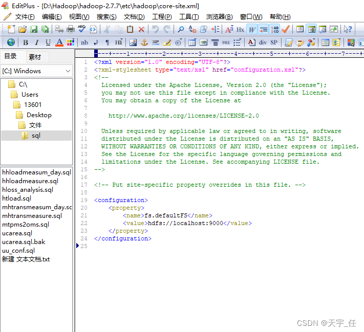 1)D:Hadoophadoop-2.7.7etchadoop主页为下.xml文件。