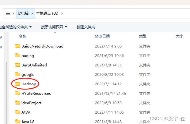 解压缩 hadoop资源. 我正在解压缩目录到磁盘根D