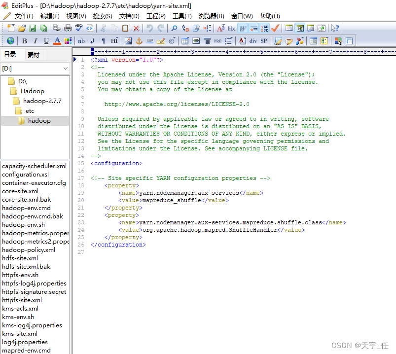 4)D:Hadoophadoop-2.7.7etchadoopYarn-site下.xml文件