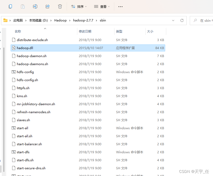 如果cd D"Hadoop–Hadoop-2".7.7sbin不能转换为sbin。你可以使用下列命令