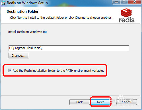 选择“添加Redis目录到环境变量PATH中”,这样方便系统自动识别Redis执行文件在哪里。